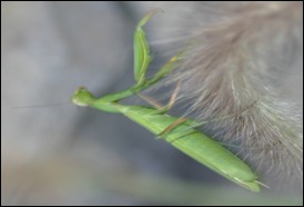 We have a plant by our front door where a praying mantis lives. She lived there all summer and every time we watered the plant she would come crawling out. Kade calls it a potanis. Sometimes we would put her in his bug jar and bring her in the house for the day and then put her to bed in the plant at night.
